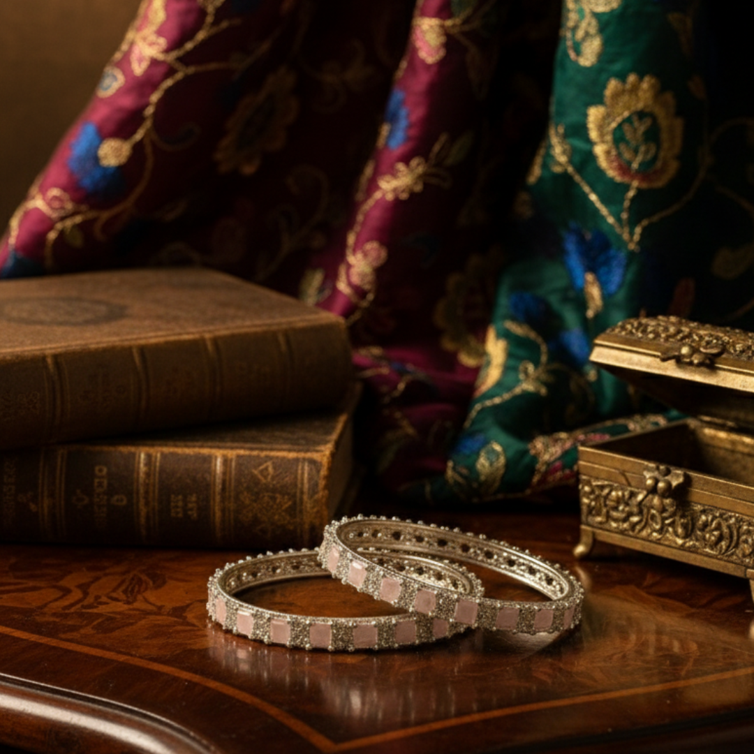 Shine with timeless elegance in our Luxury pink Crystal Bangles. This exquisite set of 3 bangles is beautifully designed with baguette-cut crystals and shimmering stone detailing, offering a glamorous sparkle that complements any outfit.