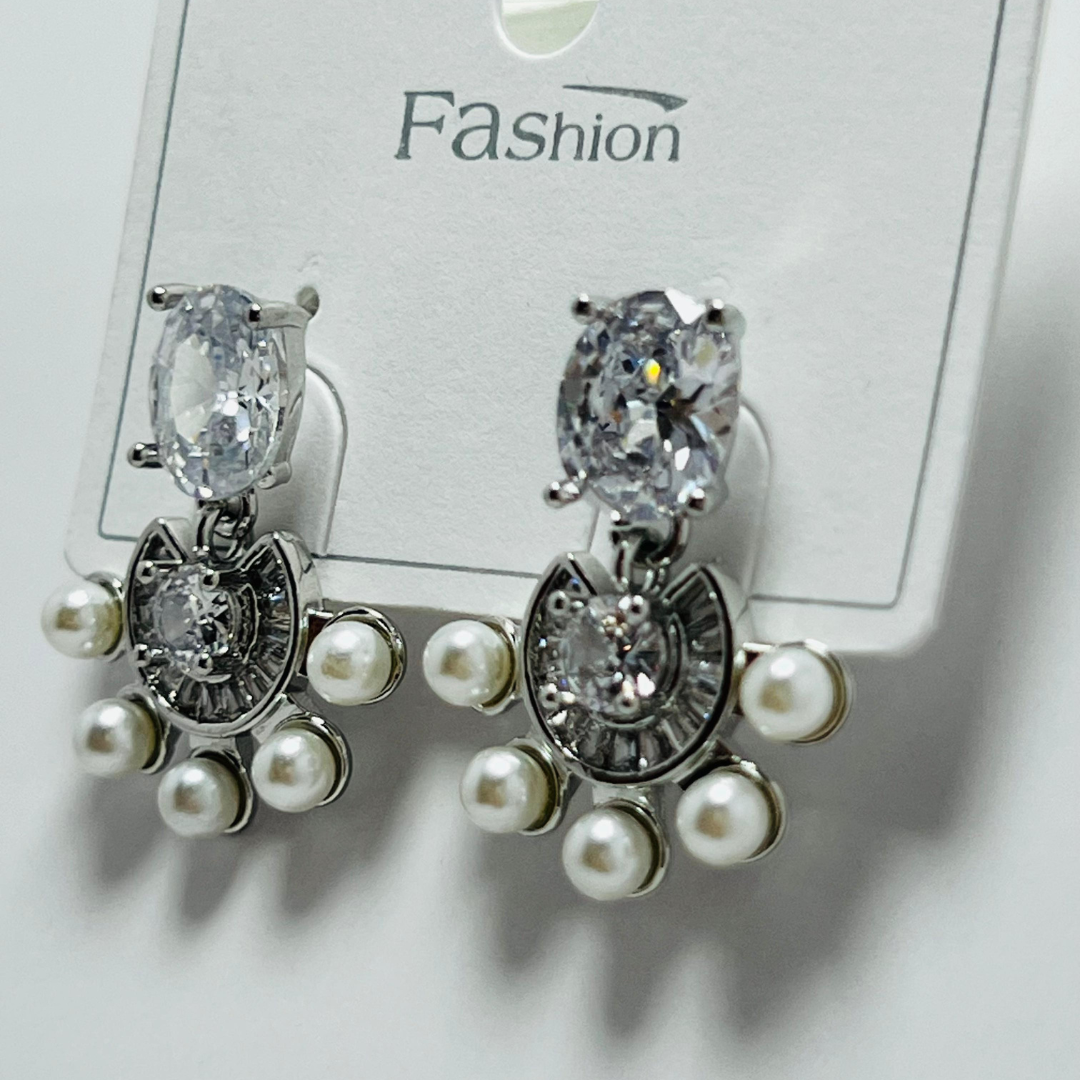 Title: Elegant Silver-Plated Pearl & Crystal Drop Earrings